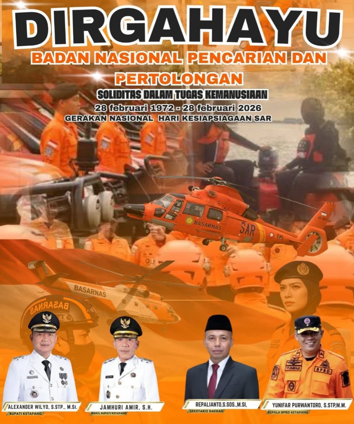 Ketapang – Bupati Ketapang Alexander Wilyo bersama Wakil Bupati Ketapang Jamhuri Amir menyampaikan ucapan selamat atas peringatan Hari Ulang Tahun Badan Nasional Pencarian dan Pertolongan (Basarnas) yang diperingati setiap tanggal 28 Februari.