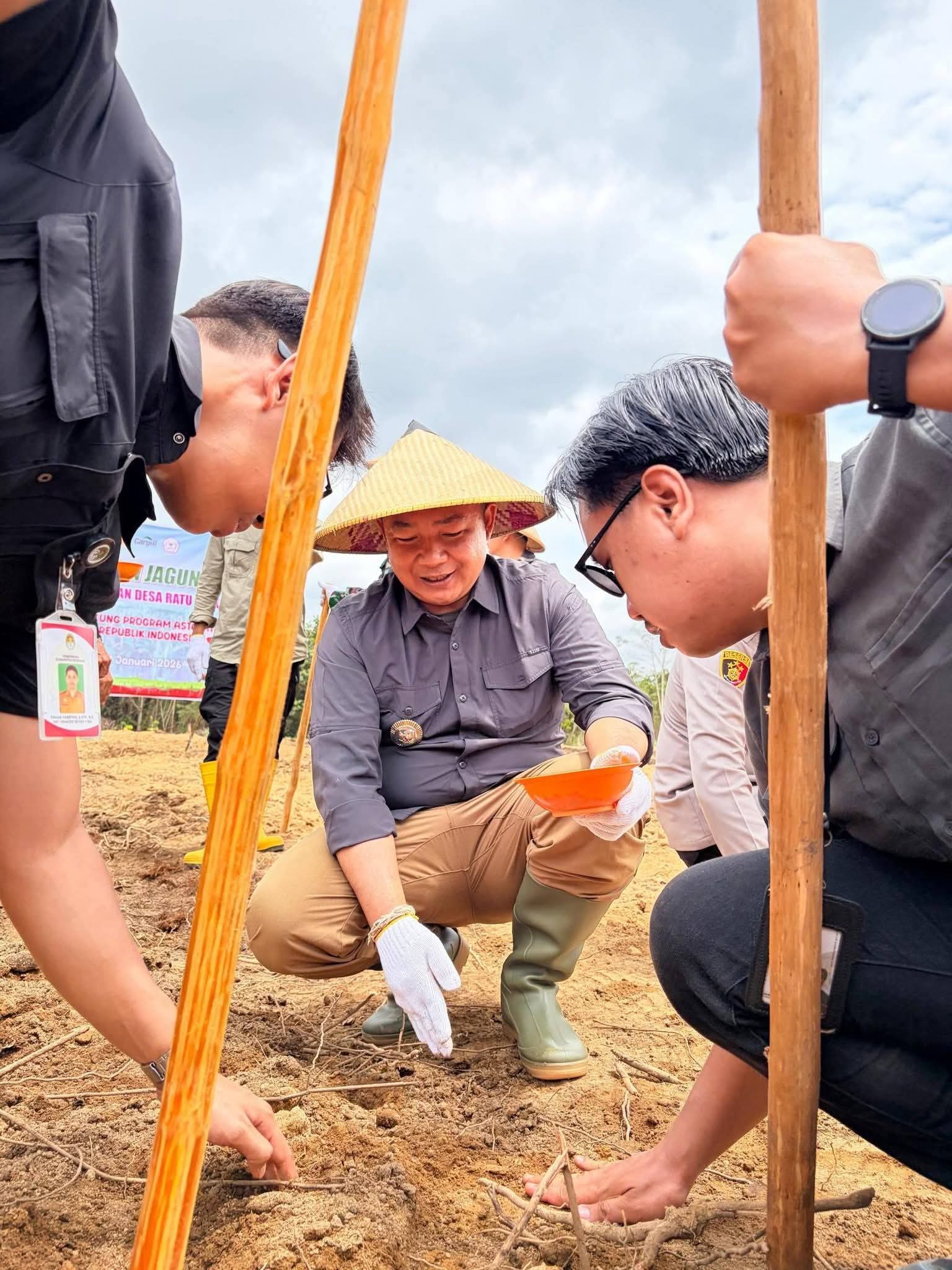 KETAPANG– Bupati Ketapang Alexander Wilyo, S.STP., M.Si menghadiri kegiatan Penanaman Jagung Program Ketahanan Pangan yang dilaksanakan di Desa Ratu Elok, Kecamatan Manis Mata, Sabtu (31/1/2026).