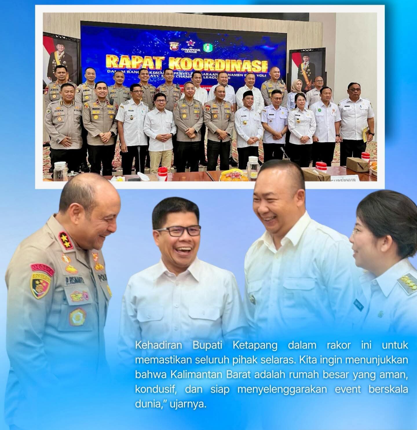 “Kehadiran kami dalam rakor ini untuk memastikan seluruh pihak selaras. Kita ingin menunjukkan bahwa Kalimantan Barat adalah rumah besar yang aman, kondusif, dan siap menyelenggarakan event berskala dunia,” ujar Bupati Ketapang.