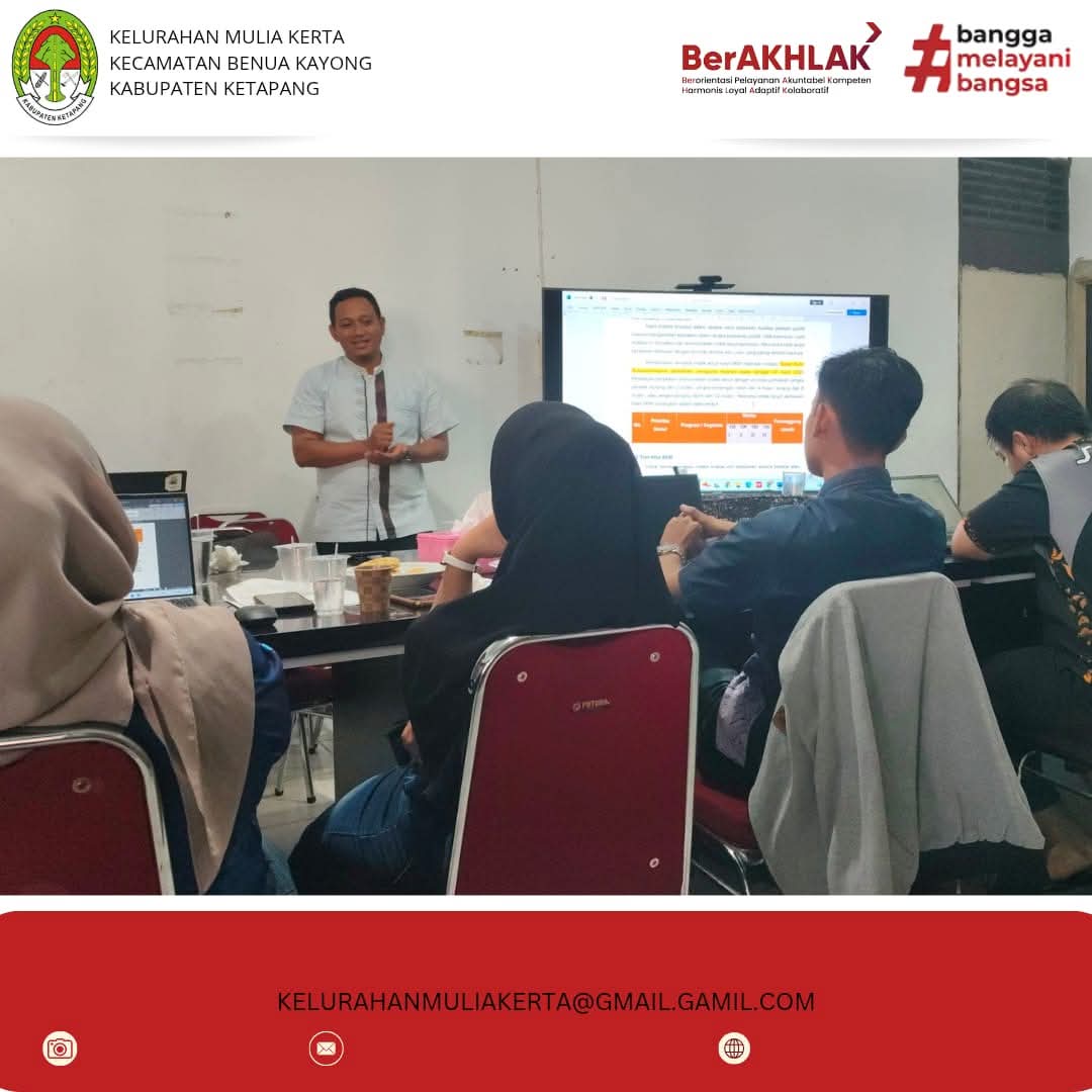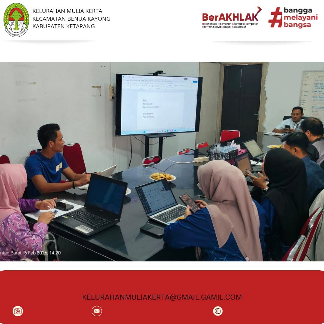 Ketapang — Kelurahan Mulia kerta -Dalam rangka meningkatkan kualitas pelayanan publik dan tertib administrasi pelaporan, Bagian Organisasi Sekretariat Daerah (Setda) Kabupaten Ketapang melaksanakan Sosialisasi Tata Cara Penginputan Data Laporan Survei Kepuasan Masyarakat (SKM) Triwulan I Tahun 2026 melalui aplikasi Kantor Kita, pada Jumat, 6 Februari 2026, bertempat di Ruang Rapat Bagian Organisasi Setda.