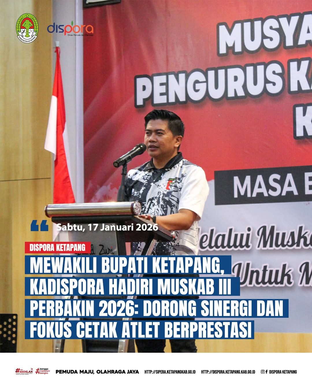 Ketapang//Mewakili Bupati Ketapang, Kepala Dinas Pemuda dan Olahraga (Kadispora) Kabupaten Ketapang, Doni Andriawan, S.STP., M.E, menghadiri pembukaan Musyawarah Kabupaten (MUSKAB) ke-III Persatuan Menembak Indonesia (PERBAKIN) Pengkab Ketapang yang digelar di Grand Zuri Hotel Ketapang (17/1/2026).