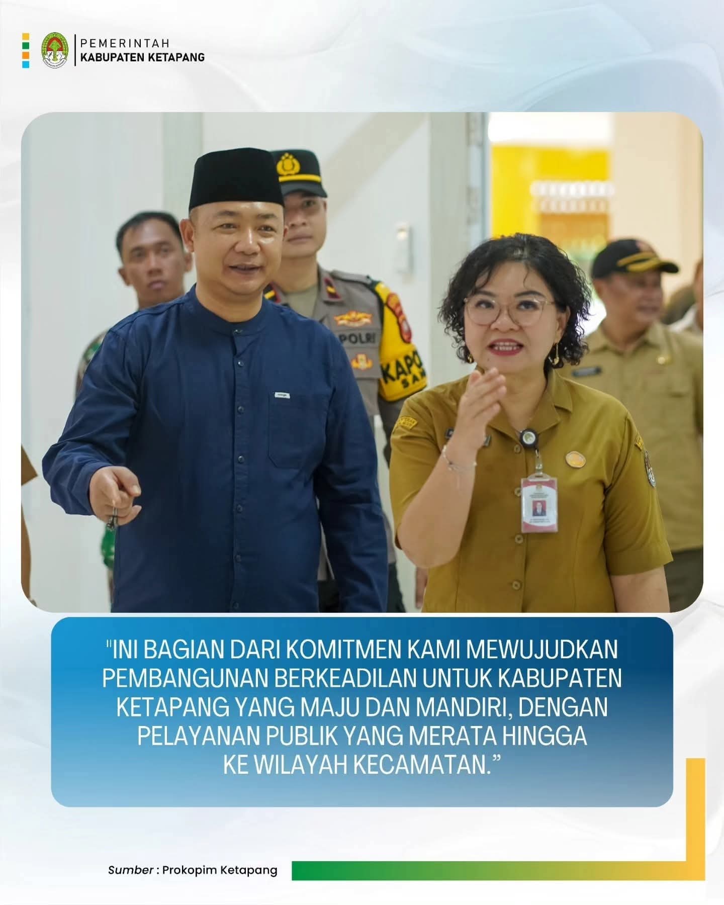 “Ini merupakan bagian dari komitmen saya dalam mewujudkan Pembangunan berkeadilan untuk Kabupaten Ketapang maju dan mandiri, melalui peningkatan kualitas sumber daya manusia dan pelayanan publik yang merata hingga ke wilayah kecamatan,” tandas Bupati.